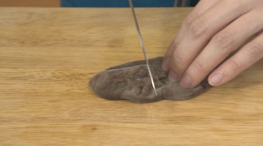 | ① さっと湯がいた生きくらげを食べやすい大きさに切り、薄力粉を薄くまぶしておく。 |